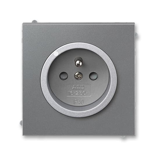 Zásuvka jednonásobná s clon., s ochranou před přepětím, bezšroub. sv.; ocelová/titanová Vhodné pro designy z vypínačových řad ABB : MT Objednací číslo : 5599M-A02357 73
