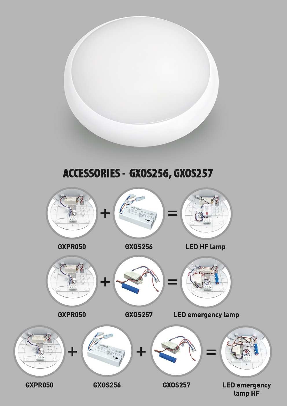 Dokoupením příslušenství GXOS256 lze vytvořit variantu svítidla doplněnou o mikrovlnný pohybový senzor.
