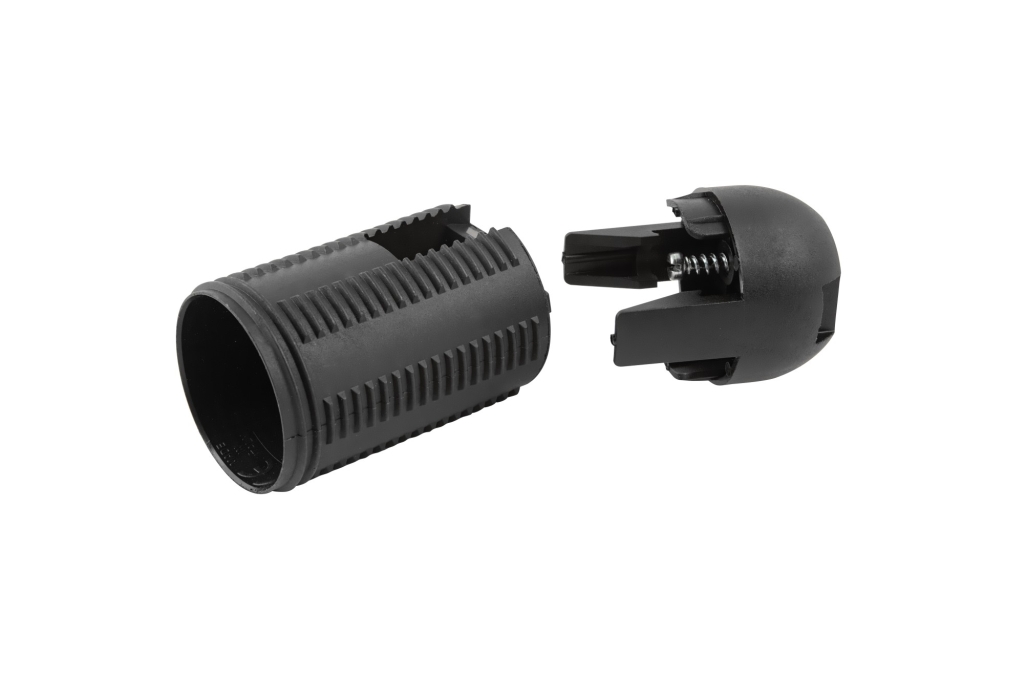 Objímka plastová E14, typ: 60 (T180+105/ASFV) - černá, s vnějším závitem, s čepičkou, bezšroubové připojovací svorky.
