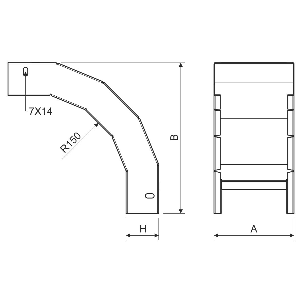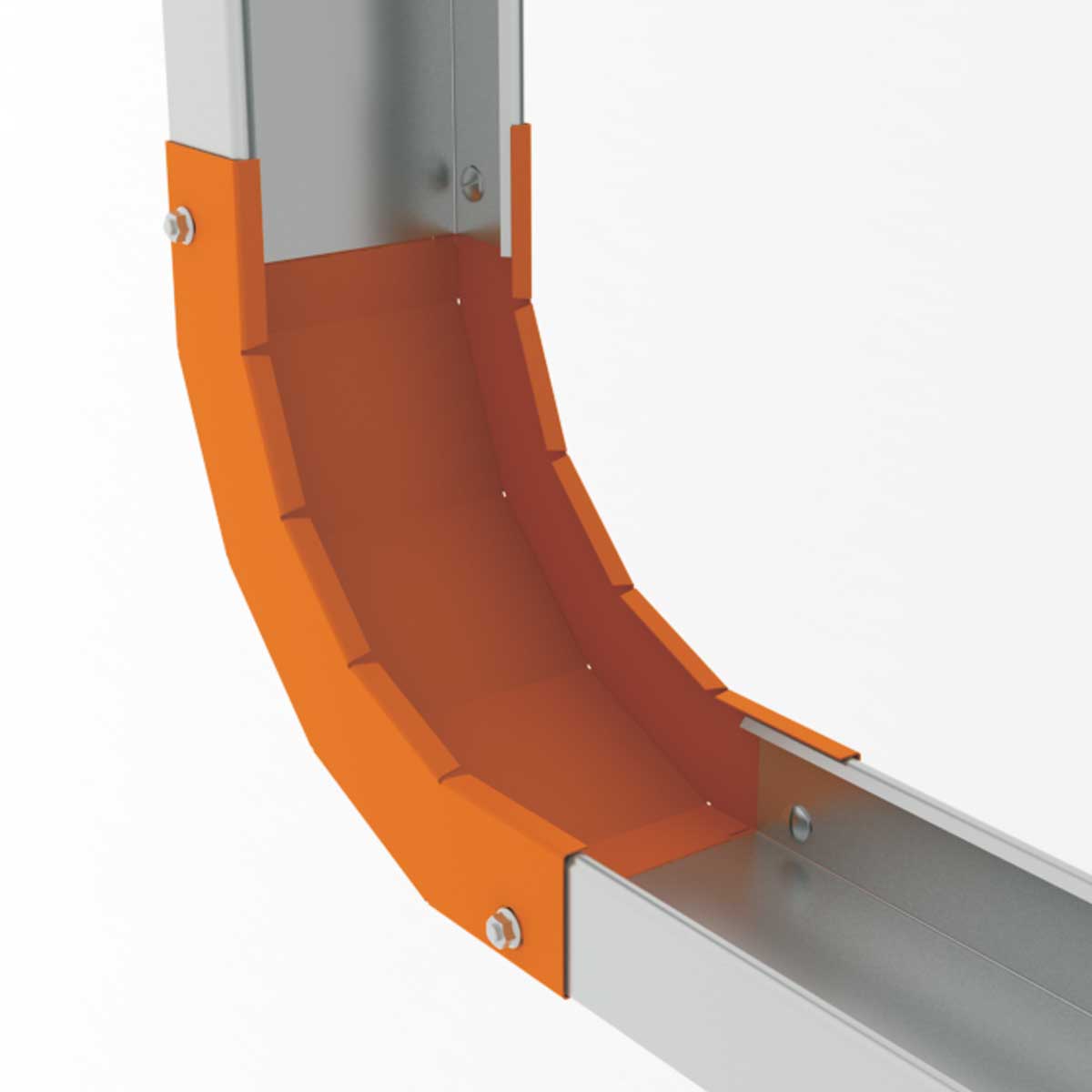 Stoupající oblouk pro vytvoření stoupání kabelové trasy nerezových žlabů 100x250 pod úhlem 90°