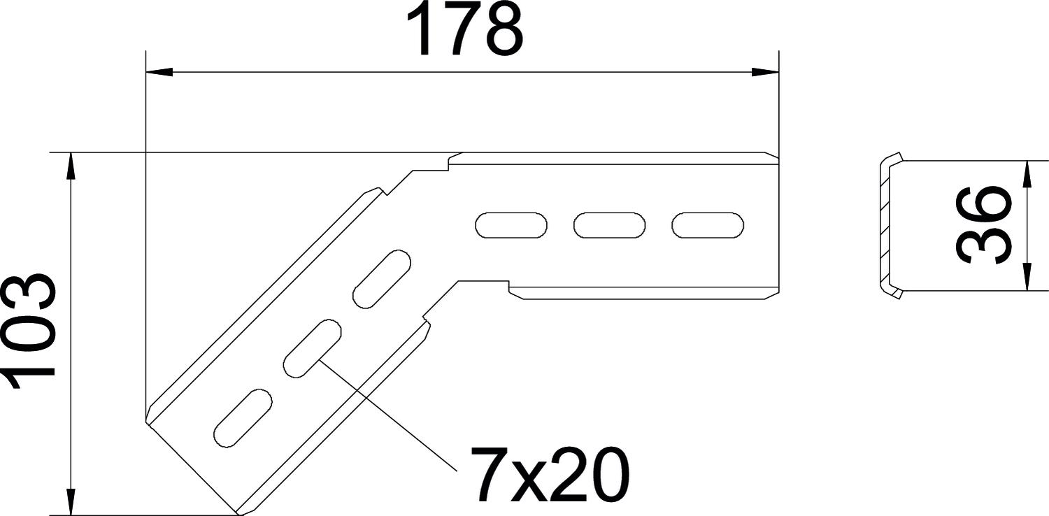OBO MW 45 SL10 A2 Montážní úhelník 45°, pro mřížový žlab C, 178x103, Nerez ocel, materiál 1.4307, A2, 1.4301 bez povrch. úpravy, dodatečně ošetřeno *6017339