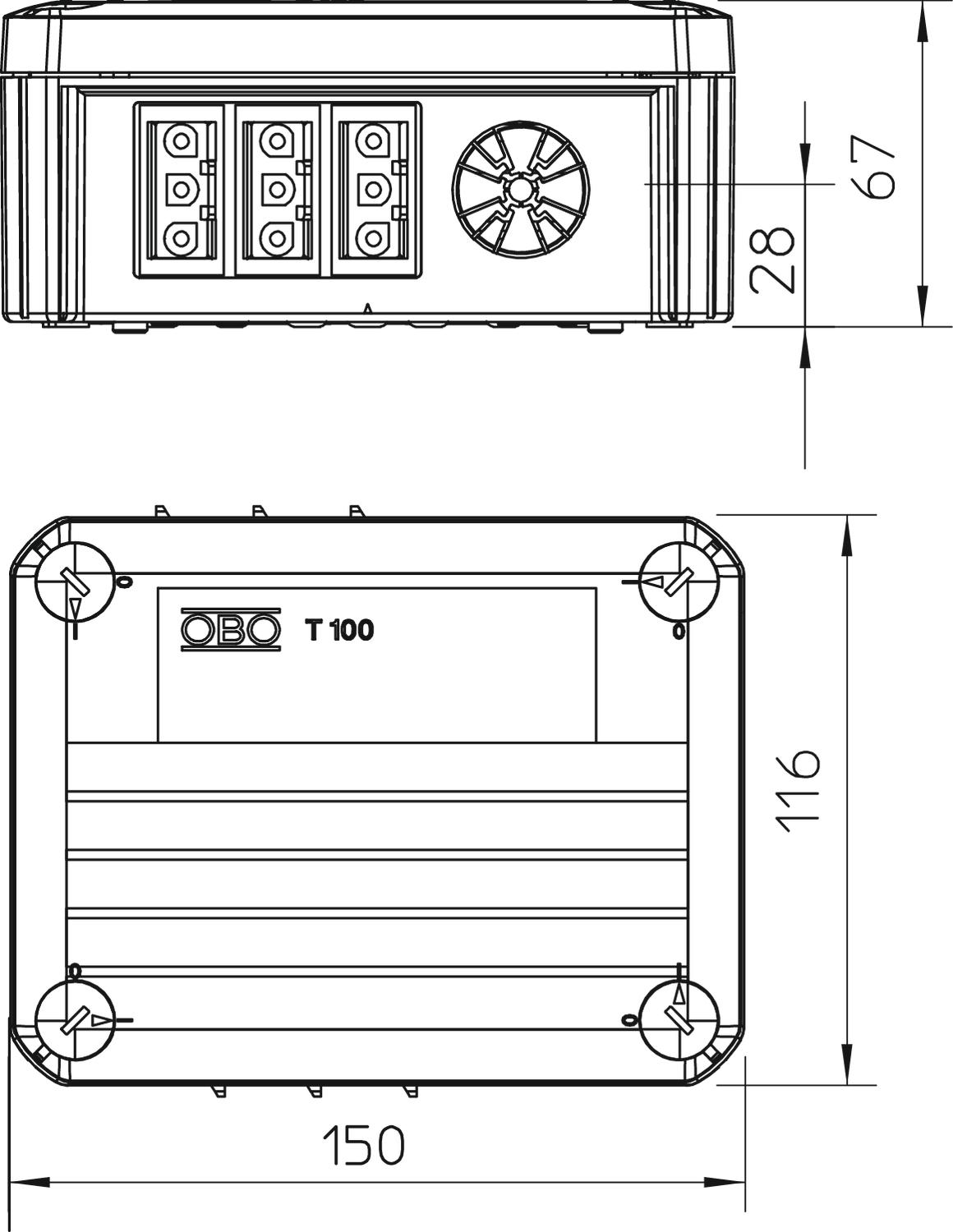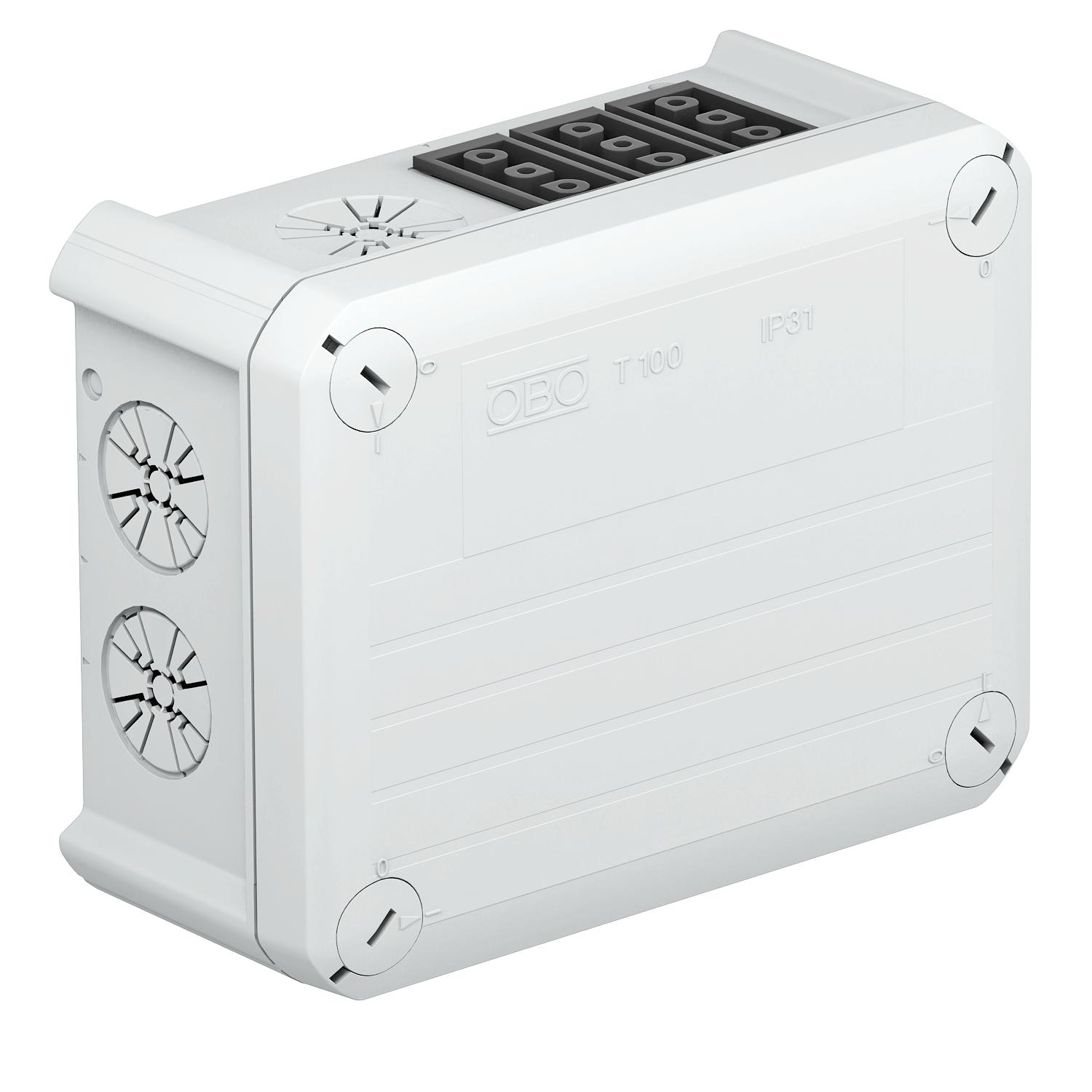 OBO T 100 WB 6S3 Odbočné krabice, se zásuvkami Wieland 6s, 150x116x67, světle šedá Polypropylén, PP *2007822