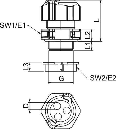 OBO V-TEC TB25 3x9 Vývodka s matkou, M25, světle šedá Polykarbonát, PC *2024928