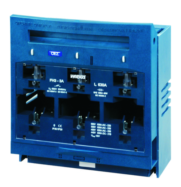 Pojistkový odpínač FH3-3A/F Ie 630 A (750 A/ZP3, 1000 A/ZP3/1000), Ue 690 V, 3pól. provedení, M12 - šrouby přiloženy OEZ:14373