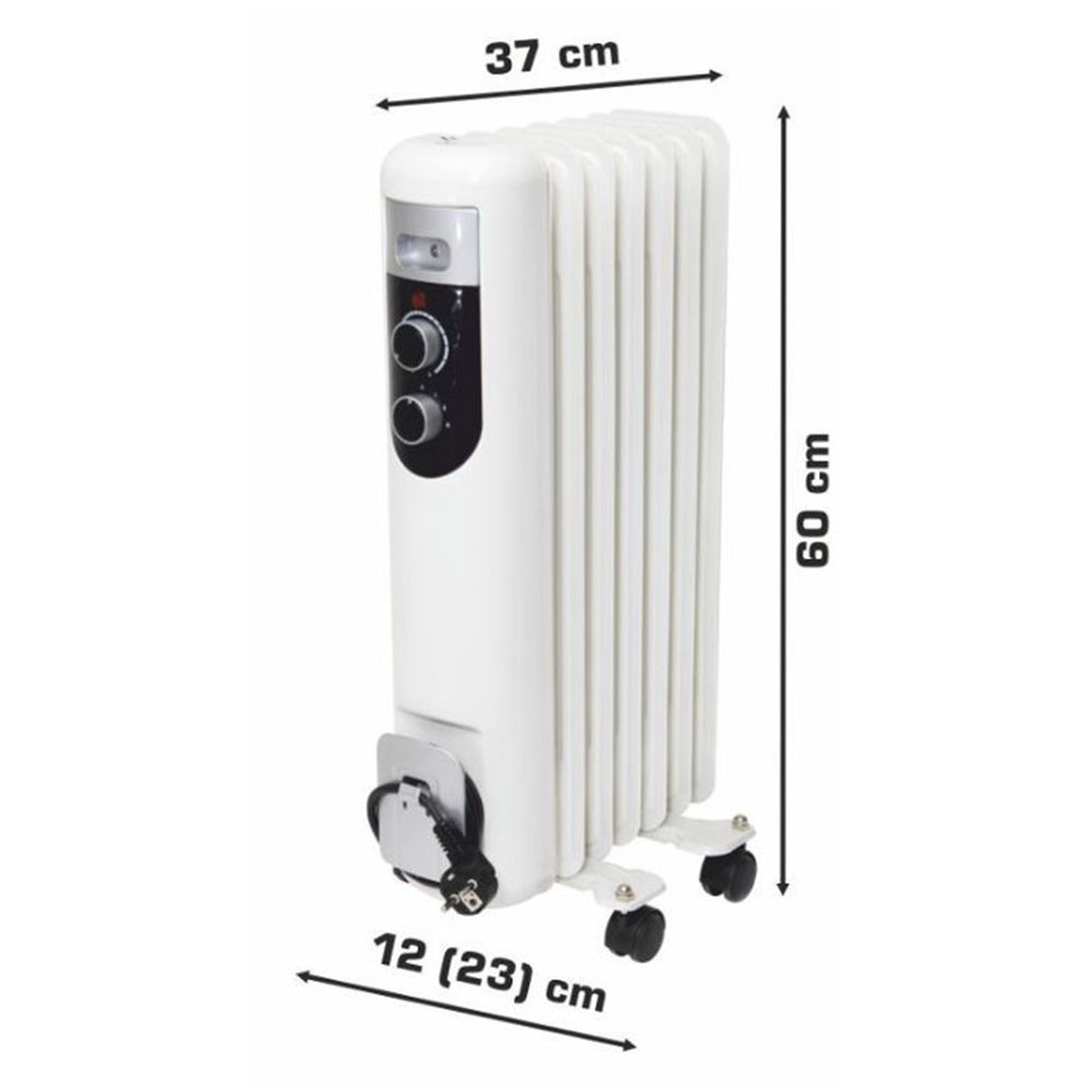 Olejový radiátor určený pro ohřívání vzduchu v interiérech, který má volitelné 3 stupně ohřevu 600 W / 900 W / 1500 W. Má 7 článků, žeber naplněných olejem. Radiátor má ochranu proti přehřátí a převrhnutí. Je otestován tlakovou zkouškou. Díky regulaci termostatu se přístroj sám zapne, jakmile teplota vzduchu v místnosti klesne pod nastavenou hodnotu a jakmile teplota stoupne na požadovanou teplotu, radiátor se vypne. Je opatřen kolečky a držadly pro snadnou manipulaci a úchytem pro přívodní kabel.