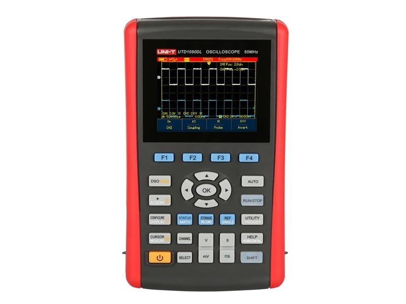 Ruční digitální osciloskop s možností ukládání informací ze série UTD1000DL je přenosné zařízení s 2 kanály. Dále disponuje vzorkováním 250 MS/s a oprotii nižší verzi UTD1025DL šířkou pásma 50 MHz. Nabízí jednoduchý funkční čelní panel, který umožňuje provádět všechna základní měření a postupy bez nutnosti seznamovat se s přístrojem do hloubky. Pomocí tlačítka AUTO lze provést rychlé nastavení.