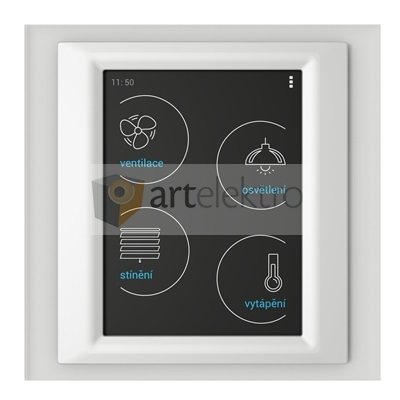 Bezdrátová dotyková ovládací jednotka RF Touch je centrálním ovládáním pro vytápění, spínání elektrospotřebičů a zařízení, stmívání světel, ovládání žaluzií.