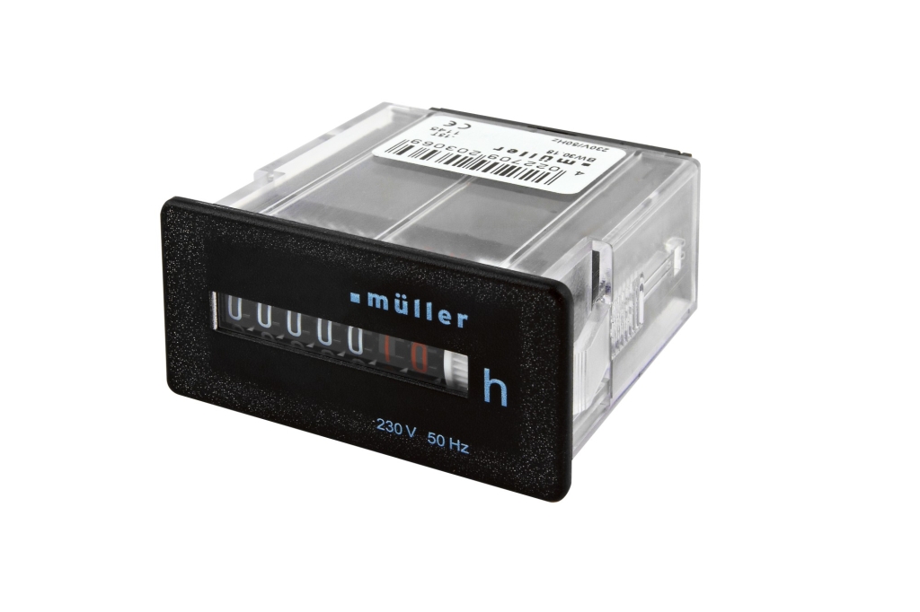 Počítadlo provozních hodin PALADIN BW 30.18 - napětí 230V (50Hz), velikost číslic 4,4mm, kapacita hodin 99999, montáž na panel, krytí IP54, barva černá. Montážní otvor: 50 x 25 mm