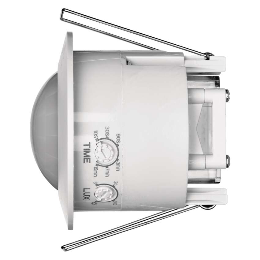PIR senzor (pohybové čidlo) IP20 1200W, bílý == barva: bílá|citlivost: <3 Lux|detekční dosah: 6 m|detekční úhel: 360°|doba sepnutí: min. 10 sekund – max. 15 minut|krytí: IP20|max. zátěž kapacitní: 200 W|max. záťěž odporová: 1200 W|napájení: 230 V~/50 Hz|prodejní obal: 1 ks, krabička|rozměr: 70 × 70 × 75 mm|typ senzoru: PIR
