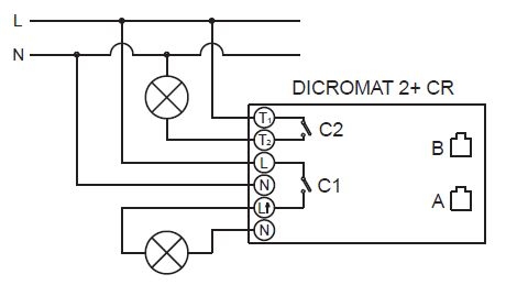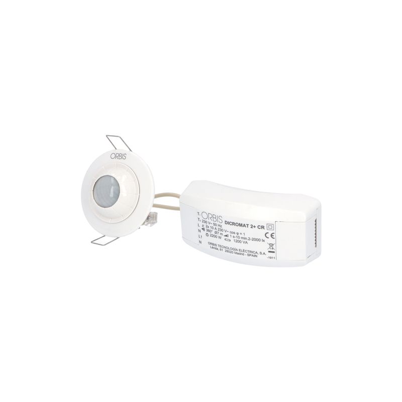 Pohybové čidlo ORBIS DICROMAT 2+CR, nastavení intenzity světla 2-2000lux, proudové zatížení 2x 10 A, jmenovité napětí 230 V, krytí IP20, úhel snímání 360°. Možnost dálkové ovl. (není součást bal.)