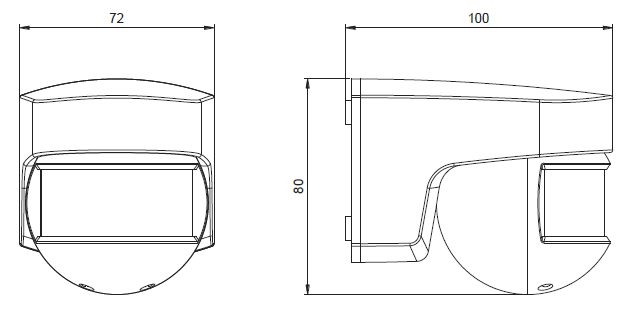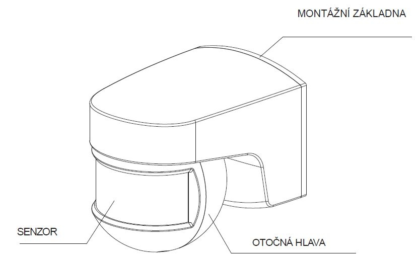 Pohybové čidlo ORBIS ISIMAT+, nastavení intenzity světla 5-30-2000lux, proudové zatížení 10 A, jmenovité napětí 230 V, krytí IP55, úhel snímání 200°.