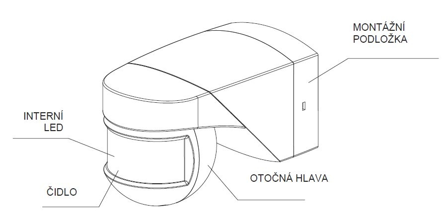 Pohybové čidlo ORBIS MULTIMAT, nastavení intenzity světla 5-30-2000lux, proudové zatížení 10 A, jmenovité napětí 230 V, krytí IP55, úhel snímání 200°.