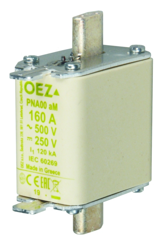 Pojistková vložka PNA00 160A aM Un AC 500 V / DC 250 V, velikost 00, aM - charakteristika motorová pouze proti zkratu, Cd/Pb free OEZ:40517