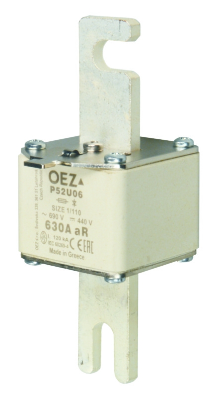 Pojistková vložka pro jištění polovodičů P52U06 400A aR DIN110 Un AC 690 V / DC 440 V, aR - charakteristika pro jištění polovodičů pouze proti zkratu, rozteč 110 mm, pro šrouby M10, postříbřené kontakty, Cd/Pb free OEZ:10555