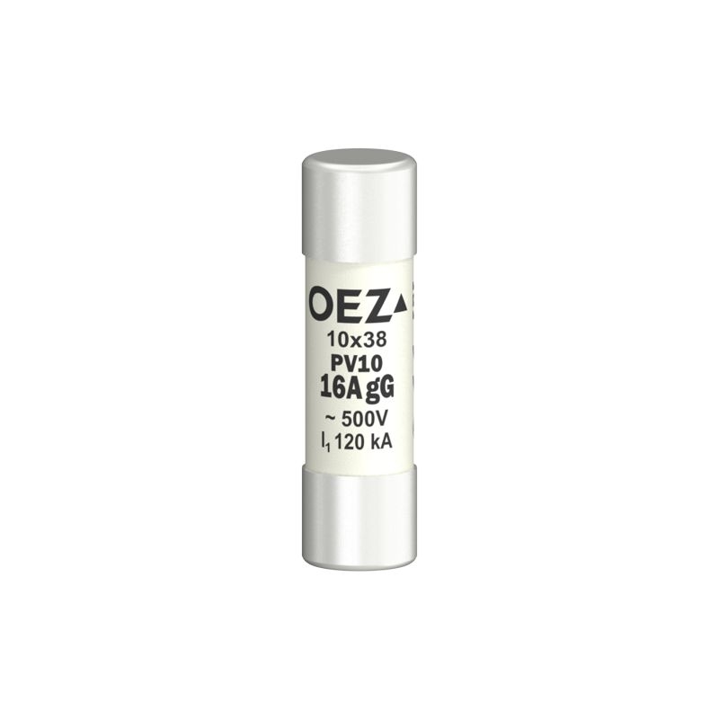 Pojistková vložka PV10 16A gG Un AC 500 V / DC 250 V, velikost 10×38, gG - charakteristika pro všeobecné použití, Cd/Pb free OEZ:06703