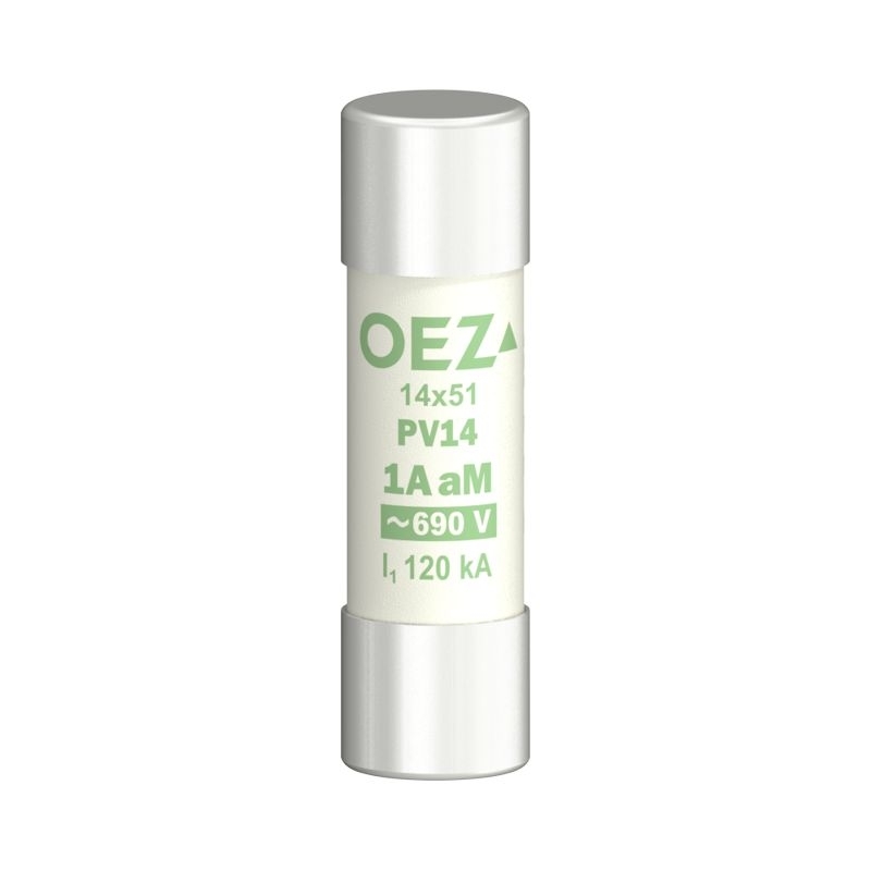 Pojistková vložka PV14 1A aM Un AC 690 V / DC 250 V, velikost 14×51, aM - charakteristika motorová pouze proti zkratu, Cd/Pb free OEZ:06713