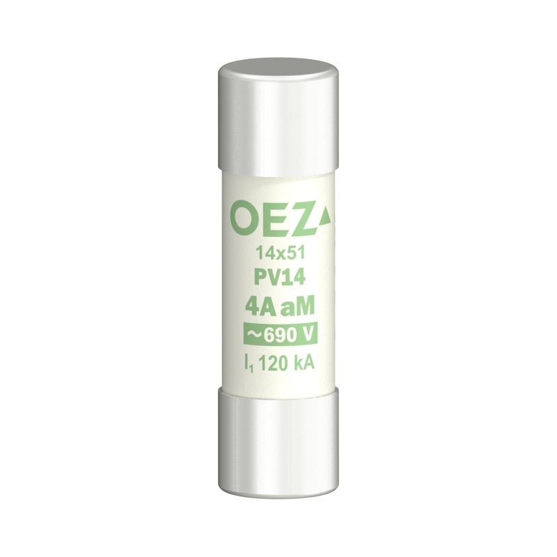 Pojistková vložka PV14 4A aM Un AC 690 V / DC 250 V, velikost 14×51, aM - charakteristika motorová pouze proti zkratu, Cd/Pb free OEZ:06717