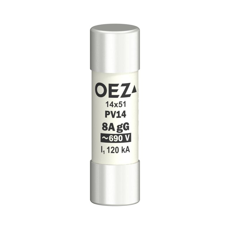 Pojistková vložka PV14 8A gG Un AC 690 V / DC 250 V, velikost 14×51, gG - charakteristika pro všeobecné použití, Cd/Pb free OEZ:06720