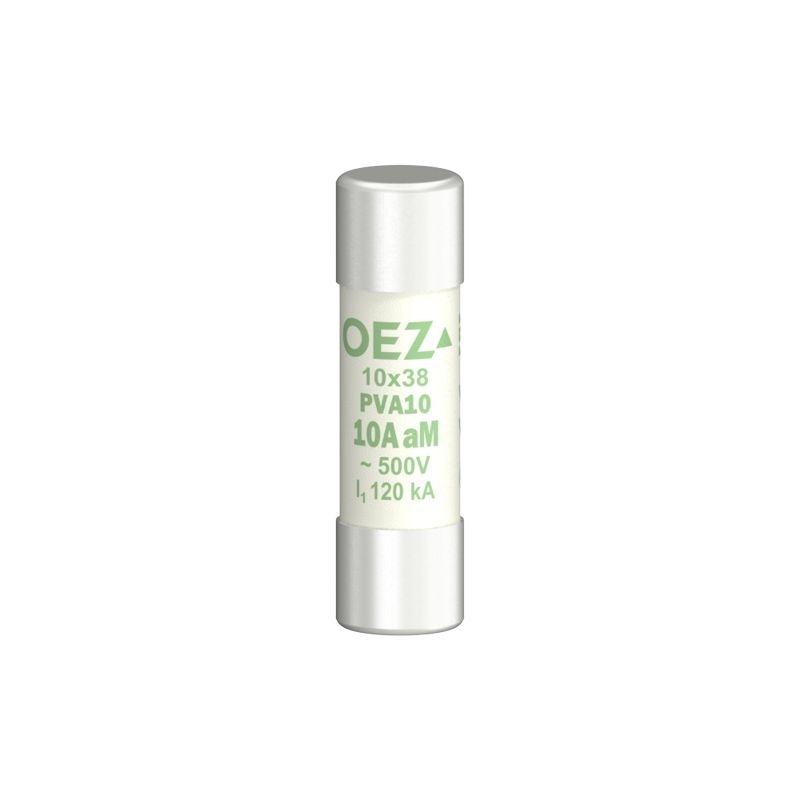 Pojistková vložka PVA10 10A aM Un AC 500 V / DC 250 V, velikost 10x38, aM - charakteristika motorová pouze proti zkratu, Cd/Pb free OEZ:40765