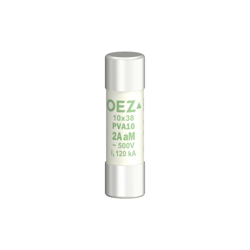 Pojistková vložka PVA10 2A aM Un AC 500 V / DC 250 V, velikost 10x38, aM - charakteristika motorová pouze proti zkratu, Cd/Pb free OEZ:40761
