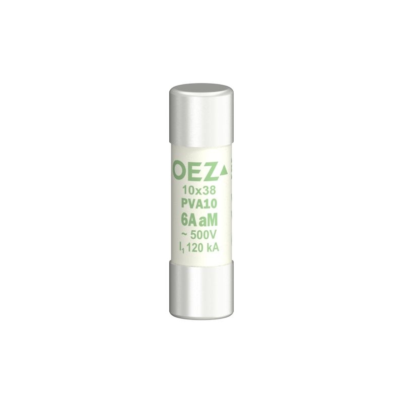 Pojistková vložka PVA10 6A aM Un AC 500 V / DC 250 V, velikost 10x38, aM - charakteristika motorová pouze proti zkratu, Cd/Pb free OEZ:40763