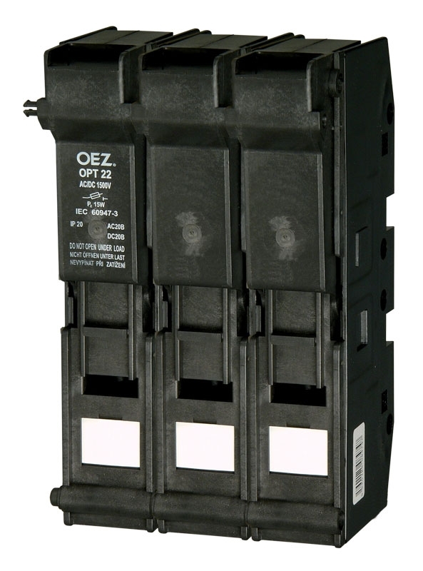 Pojistkový odpojovač OPT22/3 Ie 63 A, Ue AC 1500 V / DC 1000 V, pro válcové pojistkové vložky 22x127, 3pól. provedení OEZ:08700