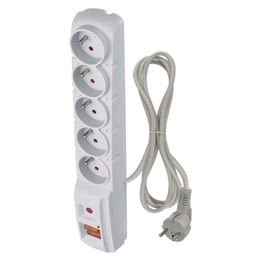 Přepěťová ochrana – 5 zásuvek 1,5m, šedá == absorpce energie: 150 J|anténní (koaxiální ochrana): ne|barva: šedá|délka: 1,5 m|dětské clonky: ano|doba odezvy: <25 ns|EMI/RFI filtr: ne|garance: 2 000 €|indikátor přepětí: ano|indikátor zapojení: ne|jištení: pojistka s čas. zpož. 10 A/250 V|jmenovité napětí: 250 V~, 50 Hz|max. proudová zátěž: 10 A max.|max. zátěž: 2 300 W|ochrana proti přetížení: ano|ochranná úroveň Up: 1,3 kV (L/N)|počet zásuvek: 5× 2P + PE|prodejní obal: 1 ks, krabice|rozměr: 330 × 54 × 55 mm|rozsah kmitočtu: neuvádí se|tel. / fax / DSL ochrana: ne|USB výstup: ne|útlum: neuvádí se|vodič: H05VV-F3G 1,0 mm?|zkušební vlna U0c: 4 kV