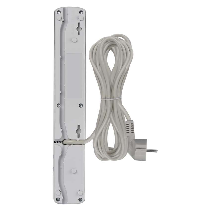 Přepěťová ochrana – 5 zásuvek, 5m, šedá == absorpce energie: 150 J|anténní (koaxiální ochrana): ne|barva: šedá|délka: 5 m|dětské clonky: ano|doba odezvy: <25 ns|EMI/RFI filtr: ne|garance: 2 000 €|indikátor přepětí: ano|indikátor zapojení: ne|jištení: pojistka s čas. zpož. 10 A/250 V|jmenovité napětí: 250 V~, 50 Hz|max. proudová zátěž: 10 A max.|max. zátěž: 2 300 W|ochrana proti přetížení: ano|ochranná úroveň Up: 1,3 kV (L/N)|počet zásuvek: 5× 2P + PE|prodejní obal: 1 ks, krabice|rozměr: 330 × 54 × 55 mm|rozsah kmitočtu: neuvádí se|tel. / fax / DSL ochrana: ne|USB výstup: ne|útlum: neuvádí se|vodič: H05VV-F3G 1,0 mm?|zkušební vlna U0c: 4 kV
