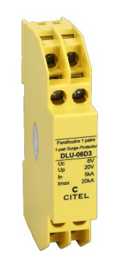 ?Přepěťové ochrany DLU jsou navrženy tak, aby chránily koncová zařízení připojená k průmyslovým sběrnicím, telekomunikačním linkám nebo datovým linkám před přepětím způsobeným bleskem. Tyto přepěťové ochrany musí být instalovány na symetrickou lištu DIN a jsou k dispozici pro většinu přenosových vedení: síťové napětí od 6 až 170 V, přenosová rychlost až 10 Mbit/s. Tyto produkty jsou 1párové přepěťové ochrany a jsou vyrobeny s monoblokovým krytem na DIN lištu