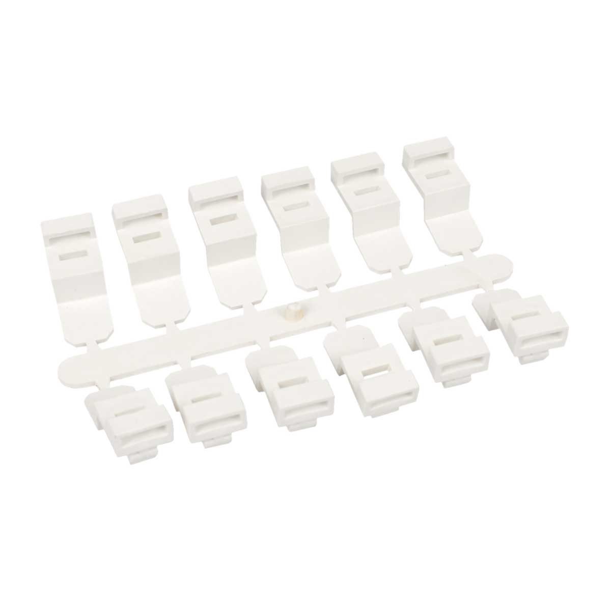 PSK 1 HB, příchytka stínícího kanálu, bílá. Slouží k připevnění stínícího kanálu do kanálů EKE a PK. Montáž zaklapnutím