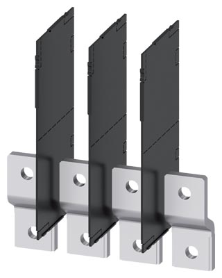 Připojovací sada 3VA9484-0QB00 přední přívody - prodloužené, Cu/Al pasy / kabelová oka / flexibary, max. šířka pasů a kabelových ok 40 mm, max. tloušťka pasů a kabelových ok 12,5 mm, 4 ks, izolační přepážky 3 ks, pro 3VA13, 3VA14, 3VA23, 3VA24 3VA9484-0QB00