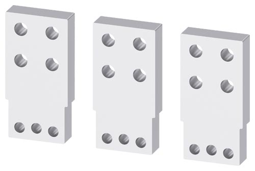 Připojovací sada 3VA9603-0QB01 přední přívody - prodloužené, Cu pasy / kabelová oka / flexibary, max. šířka pasů a kabelových ok 50 mm, max. tloušťka pasů a kabelových ok 16 mm, 6 ks - horní nebo dolní svorky, pro odnímatelné provedení, pro 3VA15, 3VA25, 3VA26 3VA9603-0QB01