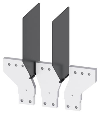 Připojovací sada 3VA9603-0QC01 přední přívody - rozšířené, Cu pasy / kabelová oka / flexibary, max. šířka pasů a kabelových ok 80 mm, max. tloušťka pasů a kabelových ok 15 mm, 3 ks, izolační přepážky 2 ks, pro odnímatelné provedení, pro 3VA15, 3VA25, 3VA26 3VA9603-0QC01
