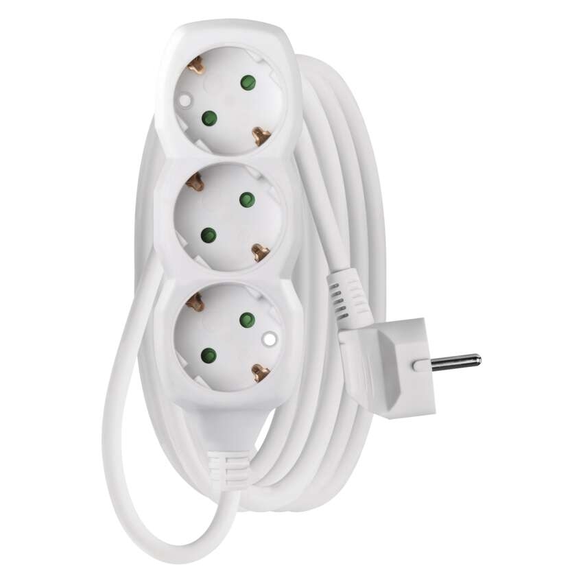 Prodlužovací kabel 3 m / 3 zásuvky / bílý / PVC / 1,5 mm2 == barva: bílá|délka: 3 m|dětské clonky: ano|materiál zásuvky a vidlice: plast|max. zátěž: 3 680 W|napětí/proud: 250 V~/16 A max.|počet zásuvek: 3× 2P + PE SCHUKO|prodejní obal: 1 ks, závěs|typ izolace: PVC|USB výstup: ne|vodič: H05VV-F3G 1,5 mm?|vypínač: ne