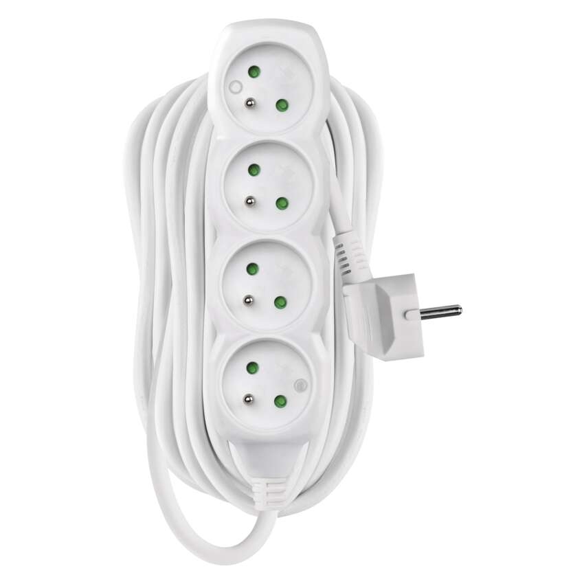 Prodlužovací kabel – 4 zásuvky, 10m, bílý == barva: bílá|délka: 10 m|dětské clonky: ano|krytí: IP20|materiál zásuvky a vidlice: plast|max. zátěž: 3 680 W|napětí: 250 V~|počet zásuvek: 4|prodejní obal: 1 ks, závěs|proud: 16 A max.|průřez vodiče: 1,5 mm?|typ izolace: PVC|USB výstup: ne|vodič: H05VV-F3G|vypínač: ne