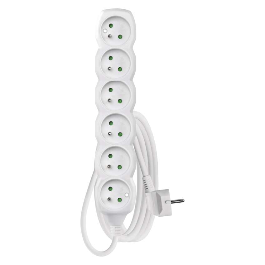 Prodlužovací kabel – 6 zásuvek, 3m, bílý == barva: bílá|délka: 3 m|dětské clonky: ano|krytí: IP20|materiál zásuvky a vidlice: plast|max. zátěž: 3 680 W|napětí: 250 V~|počet zásuvek: 6|prodejní obal: 1 ks, závěs|proud: 16 A max.|průřez vodiče: 1,5 mm?|typ izolace: PVC|USB výstup: ne|vodič: H05VV-F3G|vypínač: ne