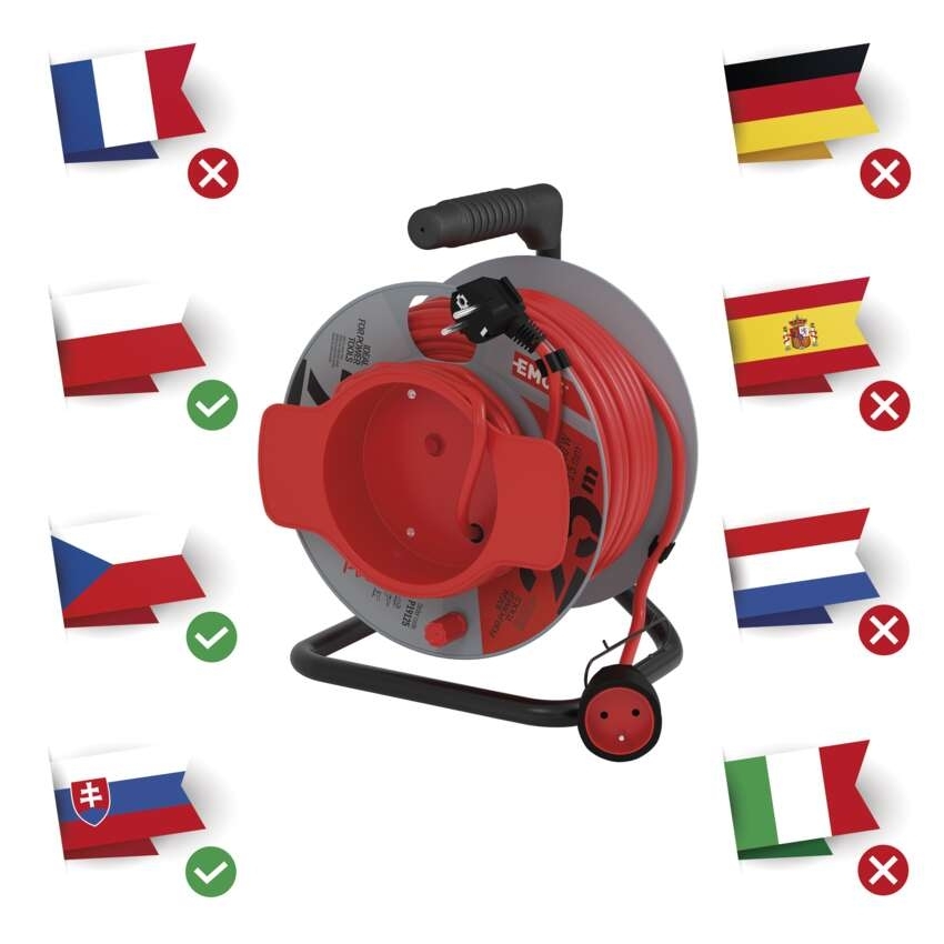Prodlužovací kabel na bubnu 25 m / 1 zásuvka / červený / PVC / 230 V / 1,5 mm2 == barva kabelu: červená|další funkce: vodící oko, brzda cívky|délka: 25 m|dětské clonky: ne|hmotnost: neuvádí se|krytí: IP20|max. zatížení navinutého: 4,8 A max./1 100 W|napětí: 230 V~|počet zásuvek: 1|prodejní obal: 1 ks, krabice|produkt: buben s pohyblivým středem|proud: 16 A|průřez vodiče: 1,5 mm?|rozměr: 240 mm|tepelná pojistka: ano|typ izolace: PVC|vodič: H05VV-F3G|záruční doba: 2 roky|zatížení rozvinutého: 16 A max./3 680 W