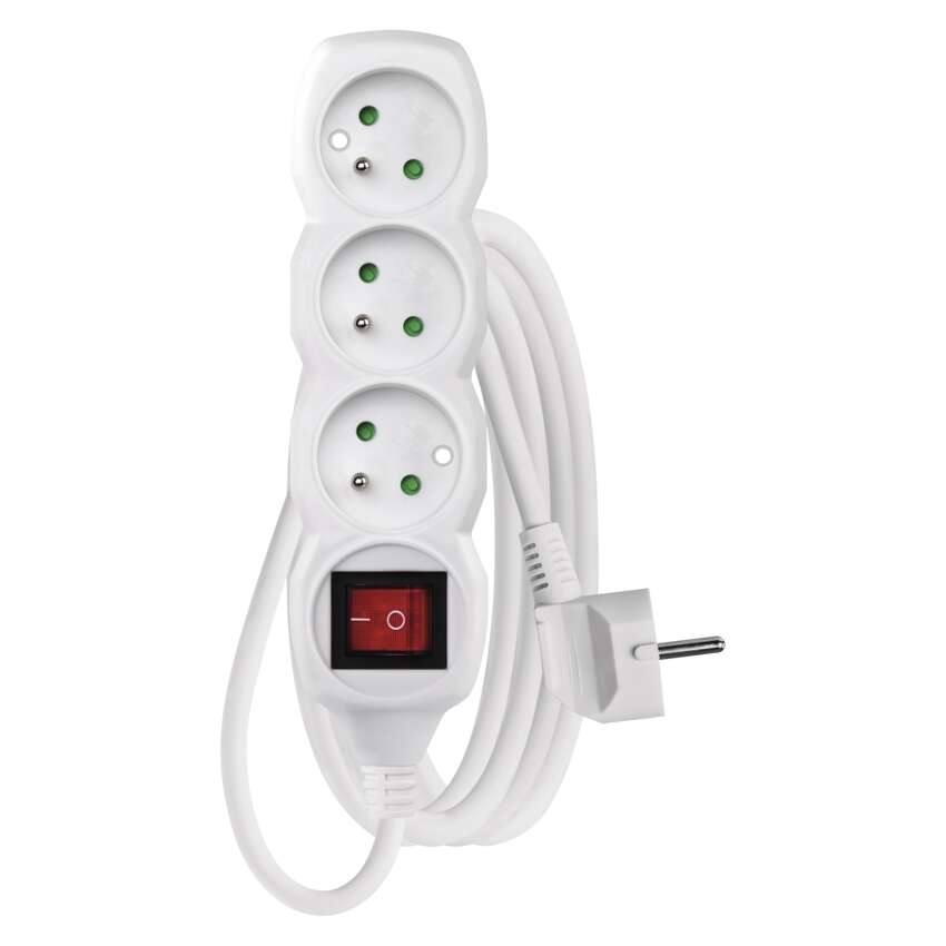 Prodlužovací kabel 3 m / 3 zásuvky / s vypínačem / bílý / PVC / 1 mm2 == barva: bílá|délka: 3 m|dětské clonky: ano|krytí: IP20|materiál zásuvky a vidlice: plast|max. zátěž: 2 300 W|napětí: 250 V~|počet zásuvek: 3|prodejní obal: 1 ks, závěs|proud: 10 A max.|průřez vodiče: 1,0 mm?|typ izolace: PVC|USB výstup: ne|vodič: H05VV-F3G|vypínač: ano