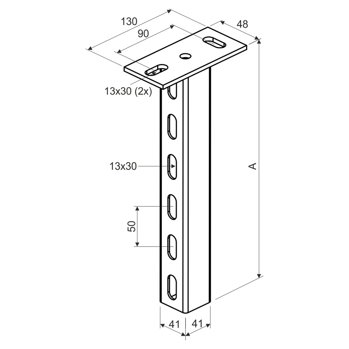 Stropní profil střední pro zavěšení ze stropu pomoví výložníků, délka 300 mm, povrchová úprava žárový zinek