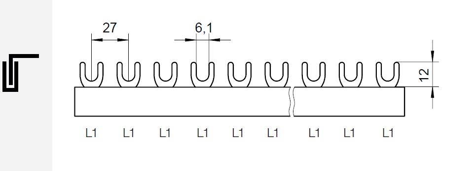Prop. lišta G-1L-27-1000/24 ISO, vidlička, 1pól., 100A, rozteč 27mm *1000169 eleman