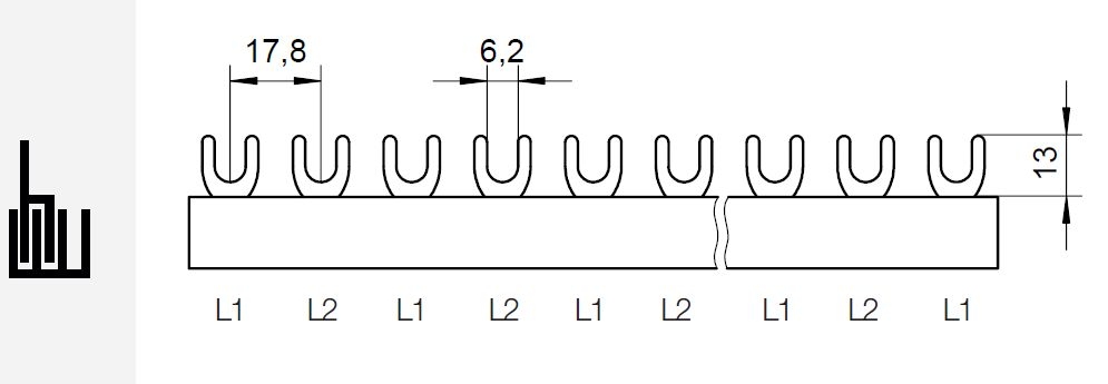 Prop. lišta G-2L-1000/16, vidlička, 2pól., 80A, rozteč 17,8mm *1000302 eleman