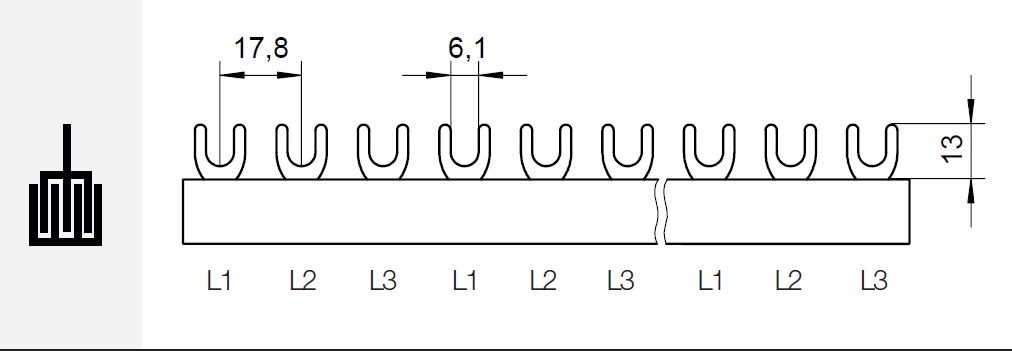 Prop. lišta G-3L-1000/16C, vidlička, 3pól., 80A, rozteč 17,8mm *1000059 eleman