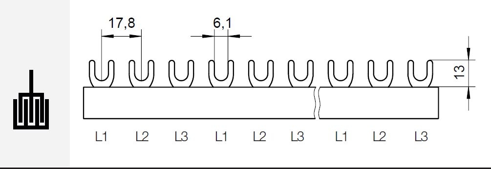Prop. lišta G-3L-210/16C, vidlička, 3pól., 80A, rozteč 17,8mm *1000233 eleman