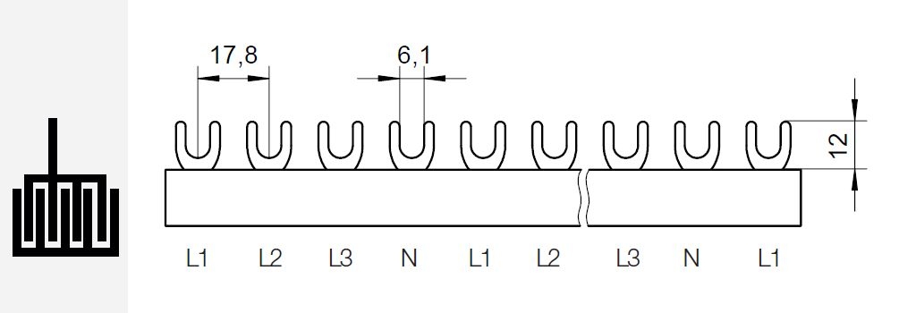 Prop. lišta G-4L-1000/16, vidlička, 4pól., 80A, rozteč 17,8mm *1000362 eleman