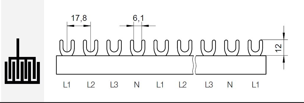 Prop. lišta G-4L-210/16, vidlička, 4pól., 80A, rozteč 17,8mm *1000361 eleman