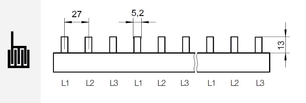 Prop. lišta S-3L-27-1000/25, kolík (jazýček), 3pól., 100A, rozteč 27mm *1000096 eleman