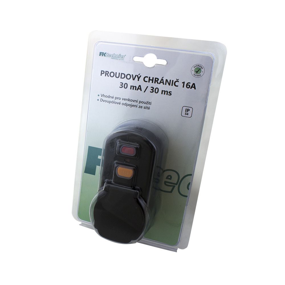 Proudový chránič 16A, bezpečnostní zásuvka, 30mA / 30ms typ: FK-PRCD-2