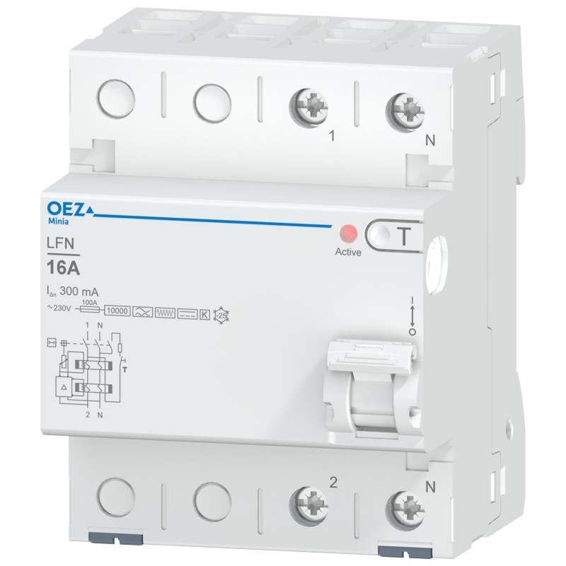 Proudový chránič LFN-16-2-300B-K In 16 A, Ue AC 230 V, Idn 300 mA, 2pól, Inc 10 kA, typ B, provedení K OEZ:46431