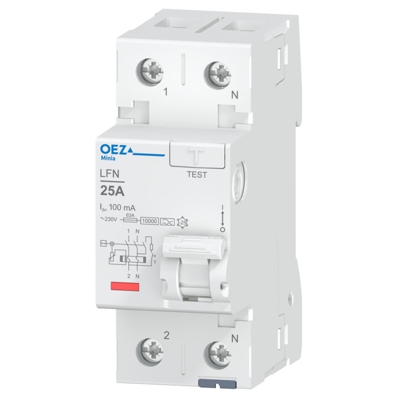 Proudový chránič LFN-25-2-100A In 25 A, Ue AC 230 V, Idn 100 mA, 2pól, Inc 10 kA, typ A OEZ:42445