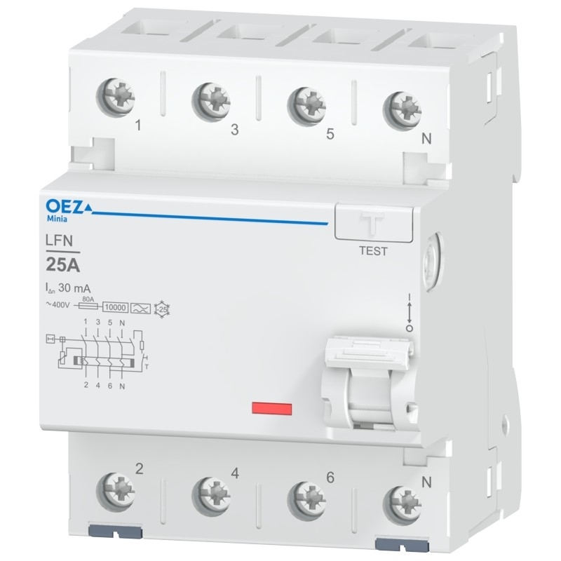Proudový chránič LFN-25-4-030A In 25 A, Ue AC 230/400 V, Idn 30 mA, 4pól, Inc 10 kA, typ A OEZ:42451